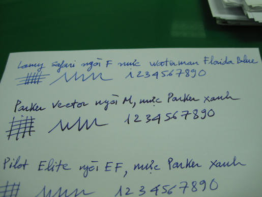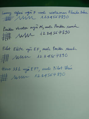 Mình bỏ viết máy mấy chục năm nên viết lại chữ yếu quá, sẽ luyện tập thêm..;)! Mực Blue của Parker phai màu rất nhiều, mình định chuyển sang Florida Blue của Waterman xem thế nào, hôm trước có bác Akarivn giới thiệu mực Royal Blue của Pelikan thấy cũng rất hay.