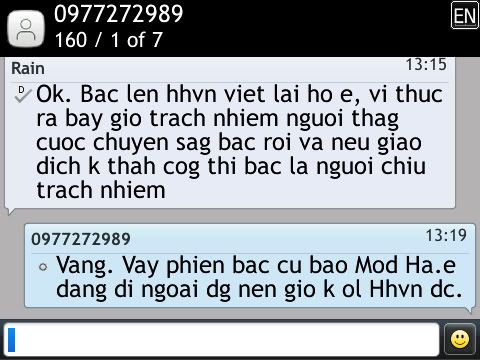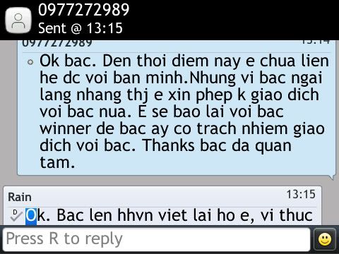 -Mình sms cho bác motconquydo nhưng cũng không thấy phản hồi.