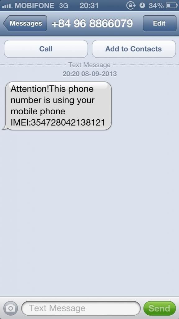 trungctu Dự bị ***** Thành viên BQT GÂY DỰNG 08/09/2013 #1 Hôm nay máy bà cả nhà em nhận được thông báo như hình: Em cũng nhận một tin nhắn tương tự, cùng sender, cùng IMEI trên con Asus. Anh em có biết vụ gì không ạ?